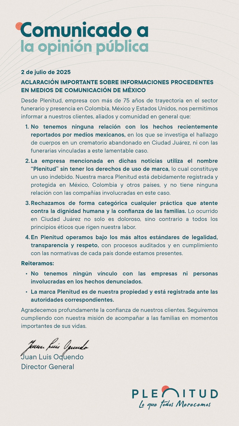 No contactes ni hagas arreglos previamente con alguna funeraria o prestadores de servicio, contacta directamente a Plenitud.